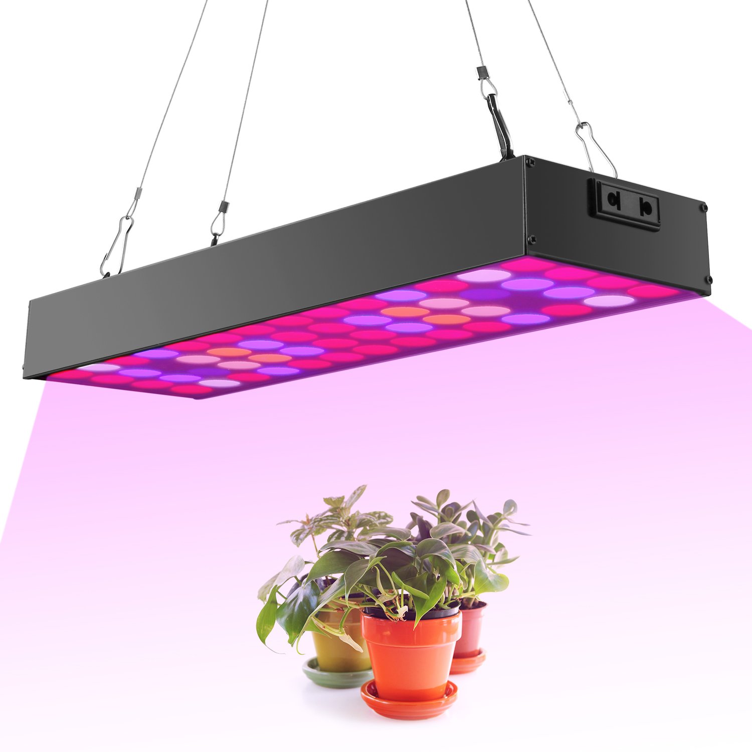 This LED grow light by Osunby runs on 45W and features a full spectrum of colors including UV and IR rays. These lights are very bright and have a lifespan of 50,000 hours. It fits well in a 3 x 3 ft. growing space and comes with a steel hanging kit you can use to hang it over your plants. This affordable model is not waterproof so it’s important to keep it away from any traces of water to prevent damages to it.